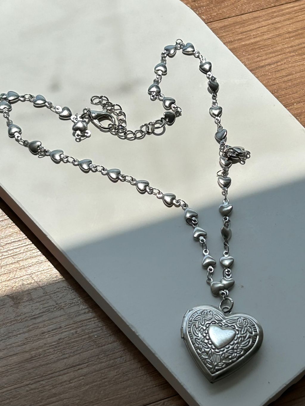 尺寸 :链长40cm + 延长链5cm 爱心直径3cm重量 :15g产品和模特图都皆为实物拍摄由于拍照灯光等因素,可能会有反光现象银饰配饰非全抛光质感 每款会有微小瑕疵 属于正常现象保养方式:避免直接与高温发性物质接触,容易导致饰品褪色为了延长佩戴时间,不佩戴时收纳在布袋或首饰箱哦。