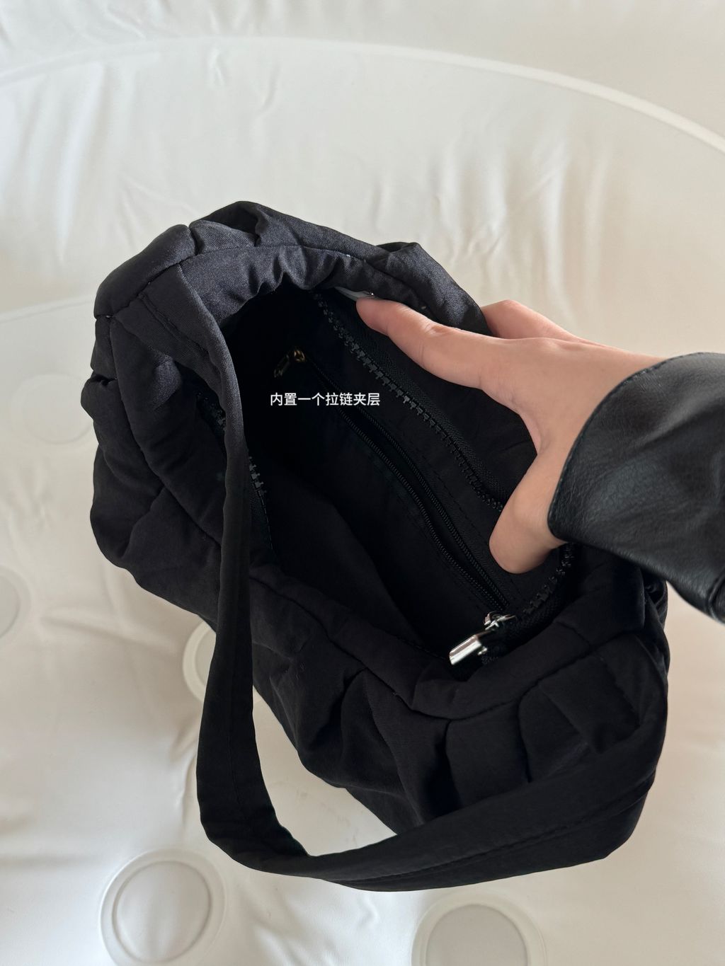 是福利款!包漂亮 价格也漂亮 嘿嘿~很实用的超萌小包 就不说ta多好搭了像一颗小泡芙的感觉轻盈柔软的面料 抓褶设计自然垂感肩带长度刚刚好 单肩背和手提都很顺手容量也完全ok 你日常需要的ta都能装出门无负担可以搭配一些小挂件 超级美丽实用又不缺质感!重点!性价比超高 良心给老婆们的福利款
