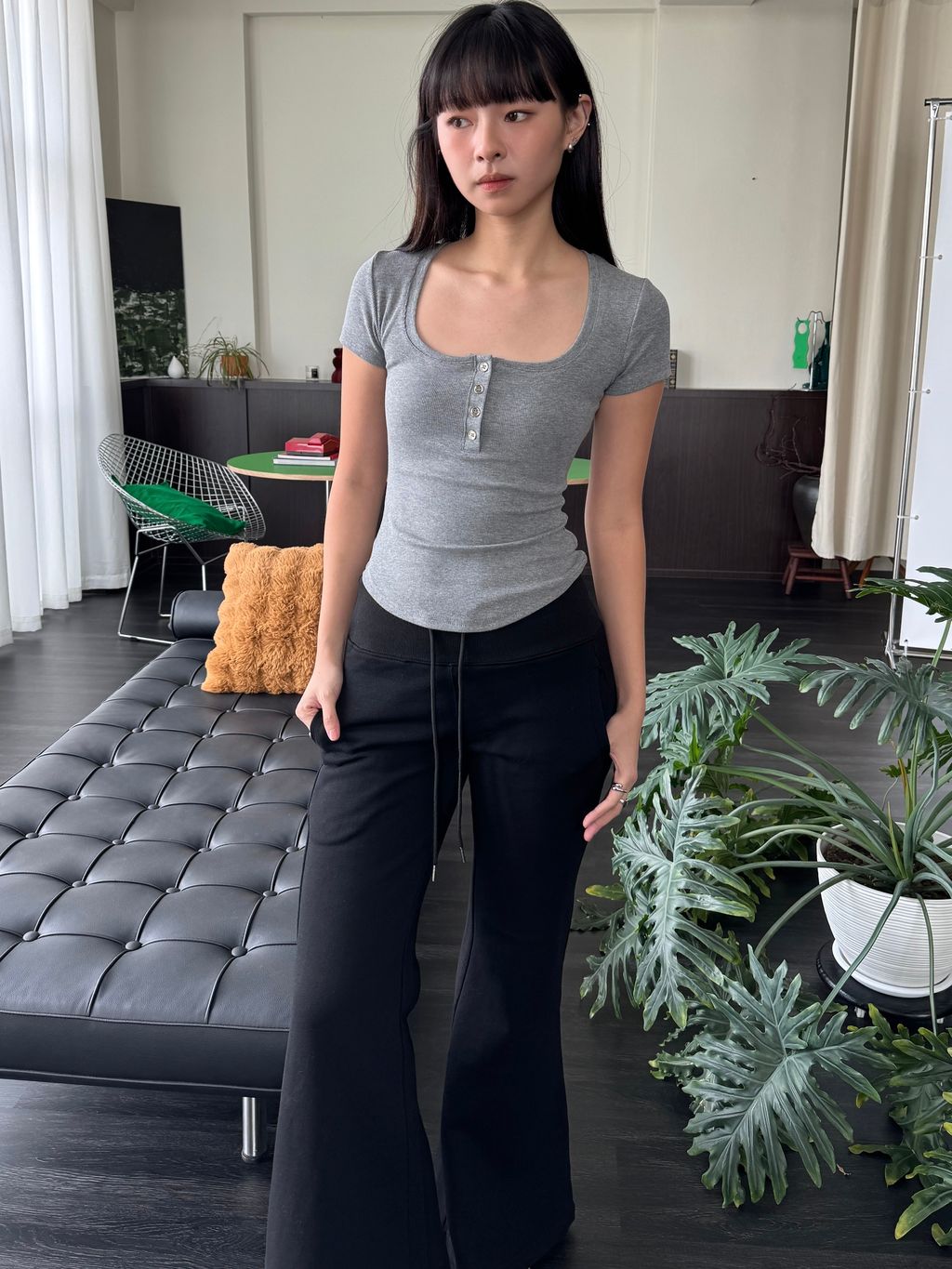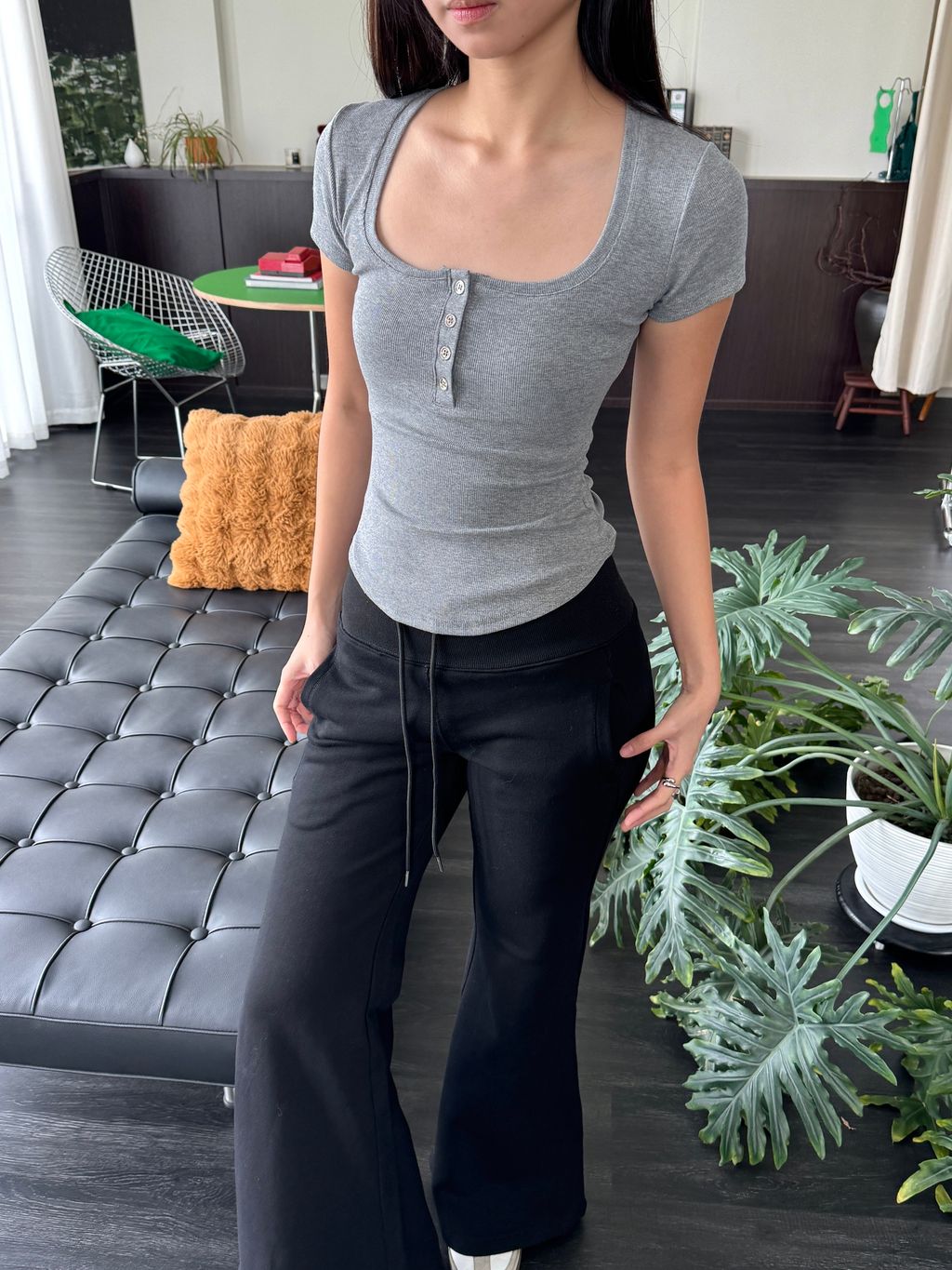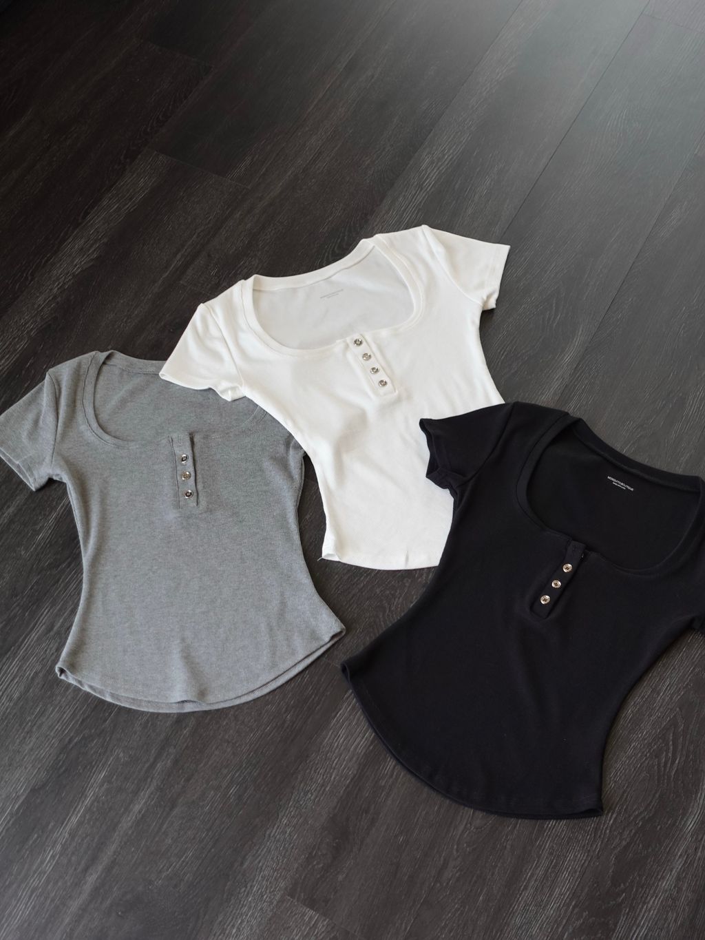 显身材神器来囖是厚实的螺纹面料 舒服弹力大看着基础但细节满满大圆领子 搭配 排扣的小设计简洁大方 不会显得人很臃肿衣服剪裁直接做的 ) ( 穿上自带腰线基础但不普通穿上有种低调的高级感足够有信心!推荐大家起码人手两件我已经包色了反正 日常最最最爱穿简单的Tee