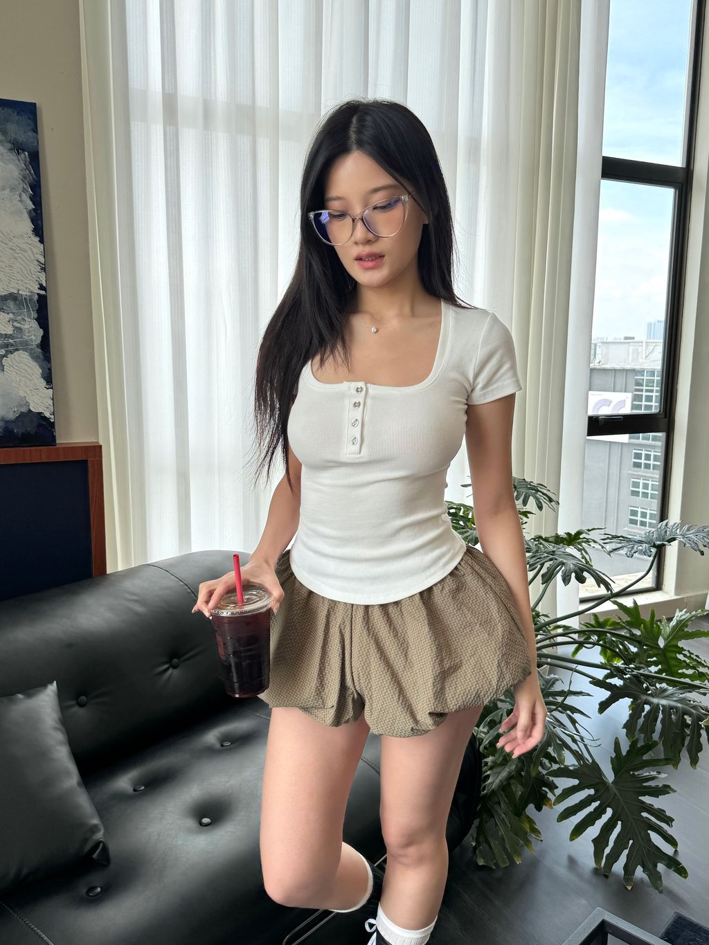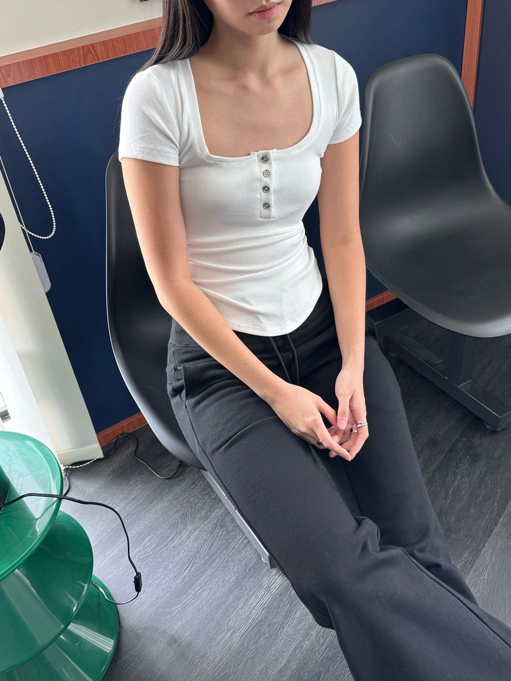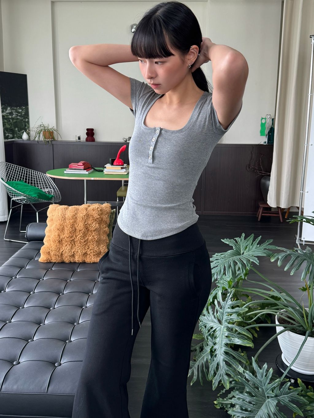 显身材神器来囖是厚实的螺纹面料 舒服弹力大看着基础但细节满满大圆领子 搭配 排扣的小设计简洁大方 不会显得人很臃肿衣服剪裁直接做的 ) ( 穿上自带腰线基础但不普通穿上有种低调的高级感足够有信心!推荐大家起码人手两件我已经包色了反正 日常最最最爱穿简单的Tee