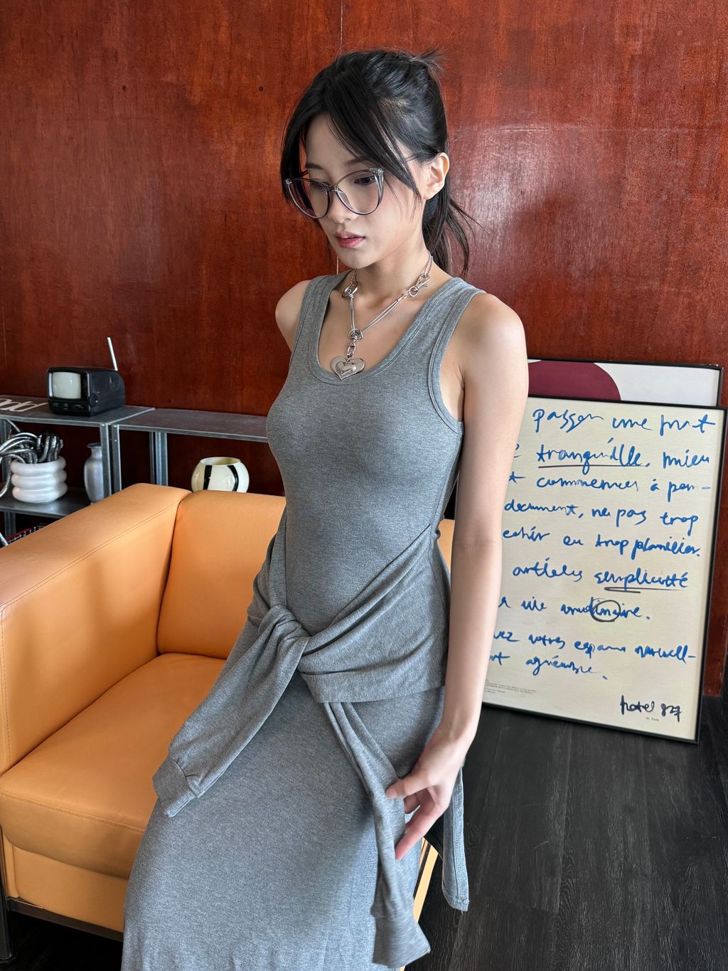 这个假两件的绑腰设计就好像多系了一件小开衫