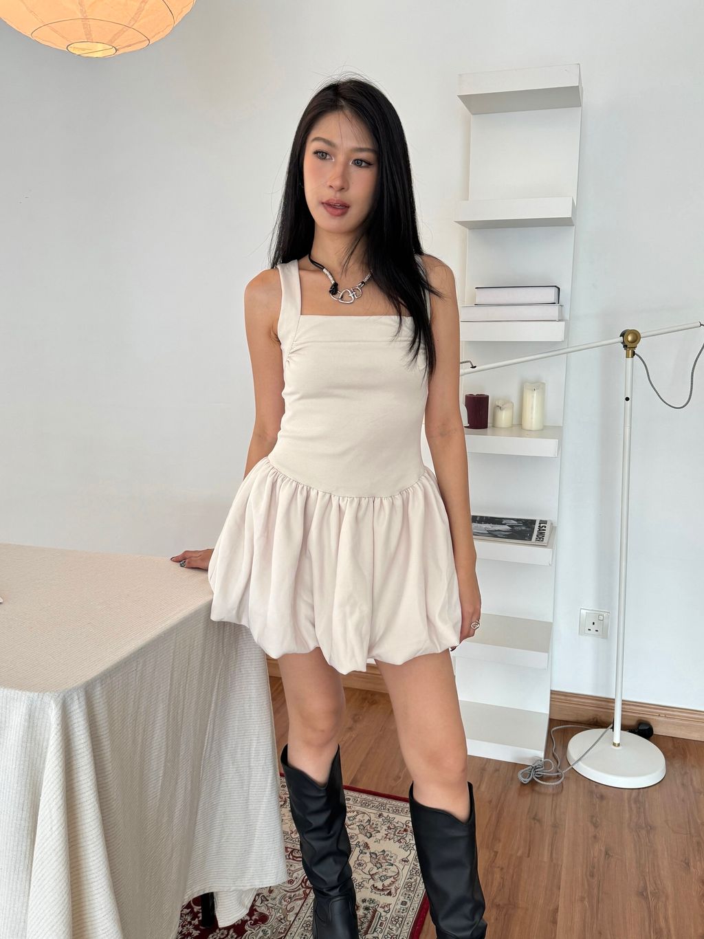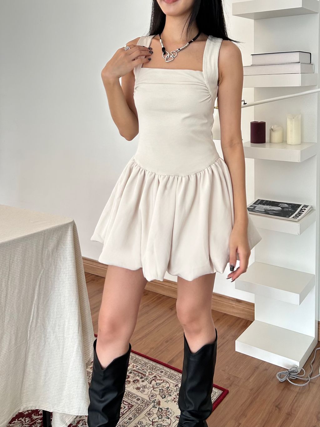 宽肩带小背心拼接蓬蓬短裙 也恰倒好处