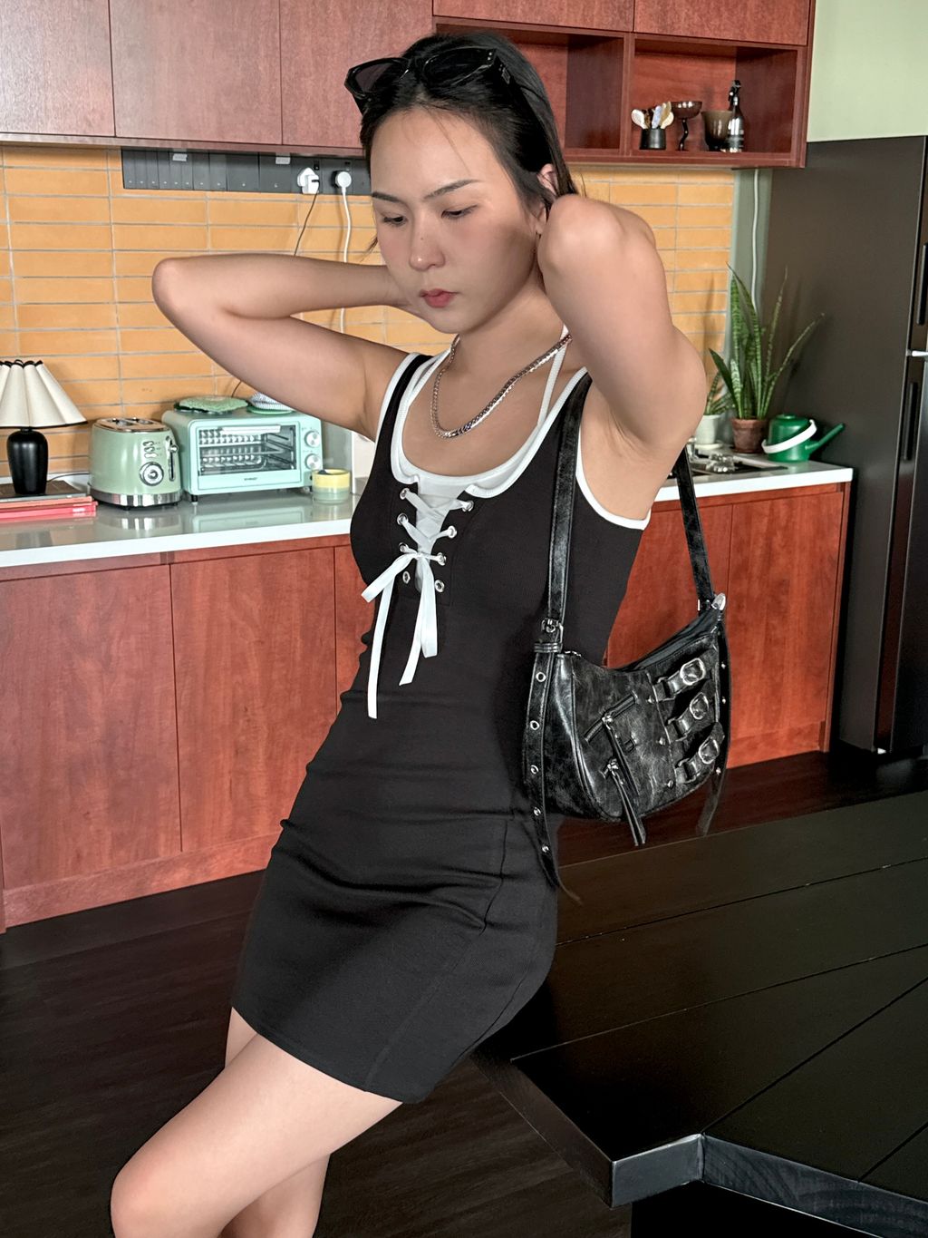 这次不是假两件了 是真两件!哈哈哈哈一件白色挂脖背心 + 绑带连衣裙 可以拿掉分开去搭配整体偏向运动风格适合日常适应不了甜美花裙的妹妹 只能说这款更好驾驭基本不挑人胸前蝴蝶结绑带元素更爱了 芜湖!!