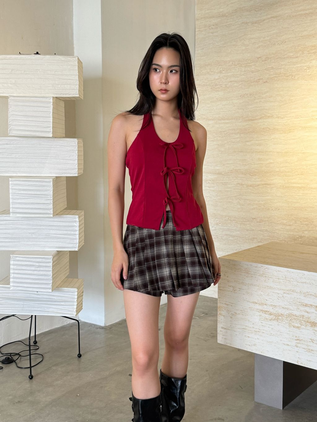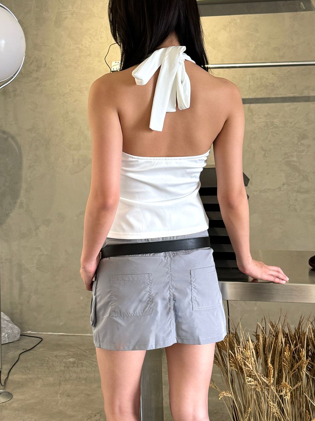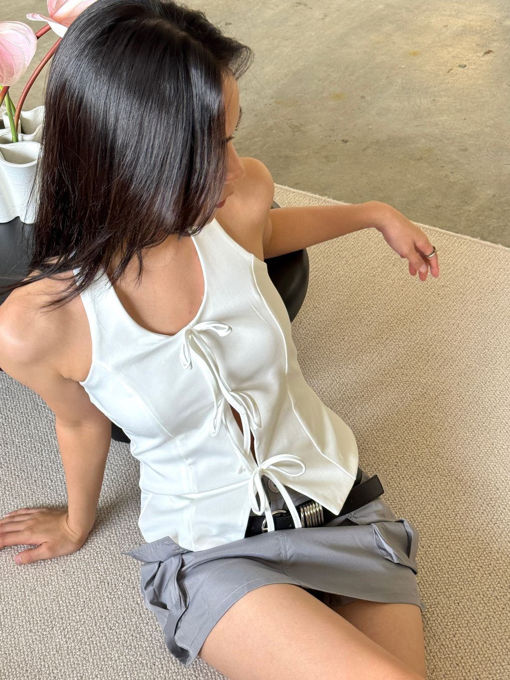 依旧是让人斯哈斯哈的甜辣上衣绑带挂脖背心面前的镂空加上蝴蝶结设计上身效果不言而喻的sexyyy后背绑带的大蝴蝶结也带点小心机的前面wow 背后也wow蝴蝶结是已经固定 不需要自己再绑哦!衣身剪裁也稍微做了点小收腰视觉上显瘦又显高气质个性都在线的一款!