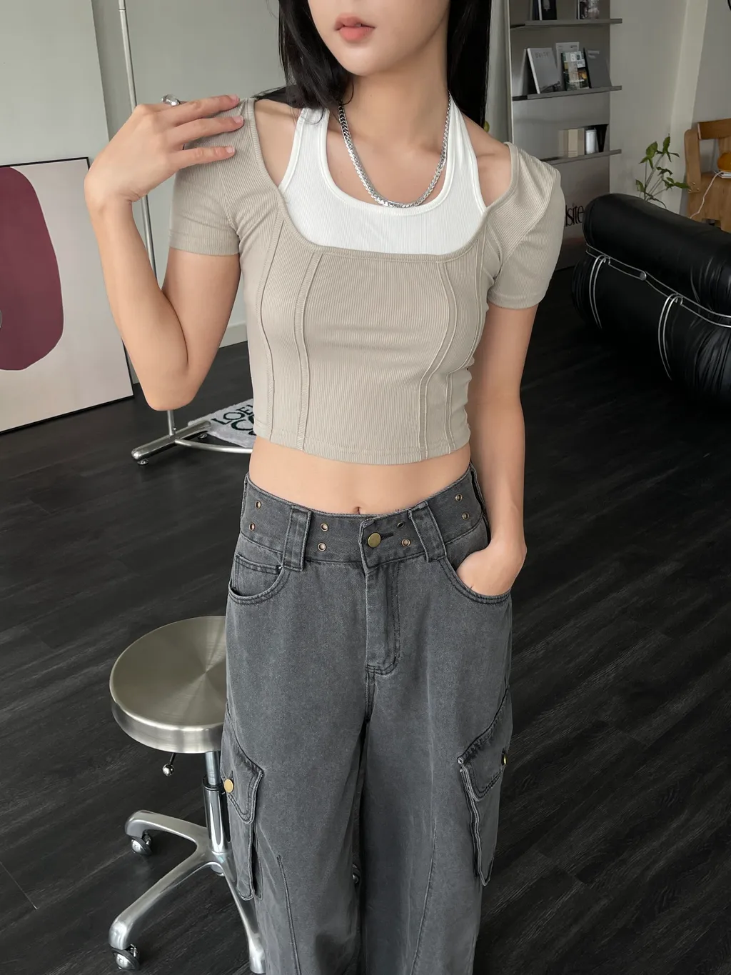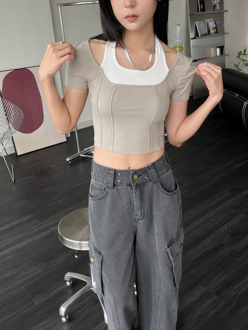 假两件真的是又懒又爱叠穿的女孩最爱像我!!!内里一件挂脖背心叠穿的感觉一样修身不紧身 版型颜色都非常奈斯衣身的压线设计 真的有显瘦效果诶简约不简单日常让你不花心思搭配都可以看起来像精心搭配