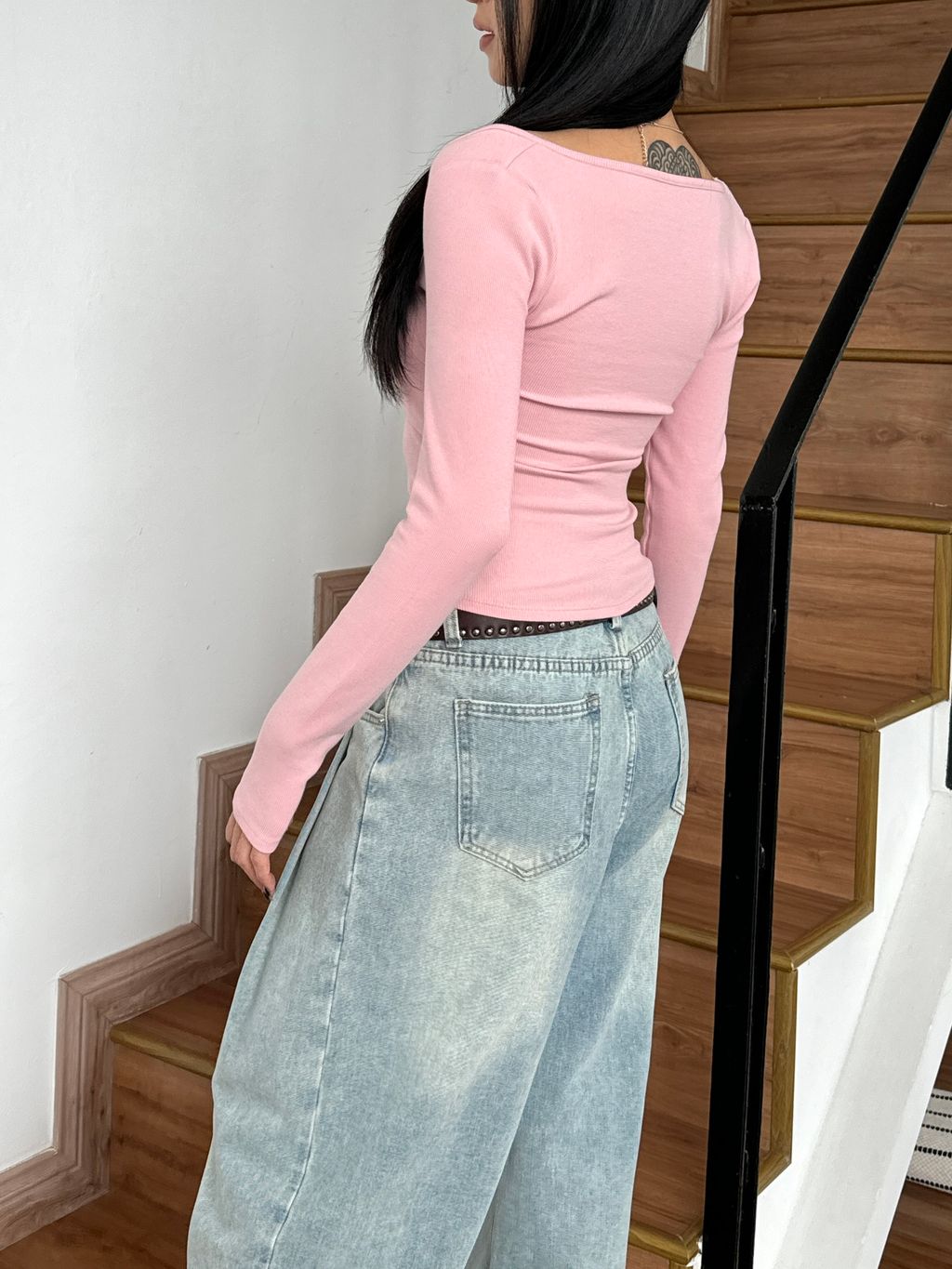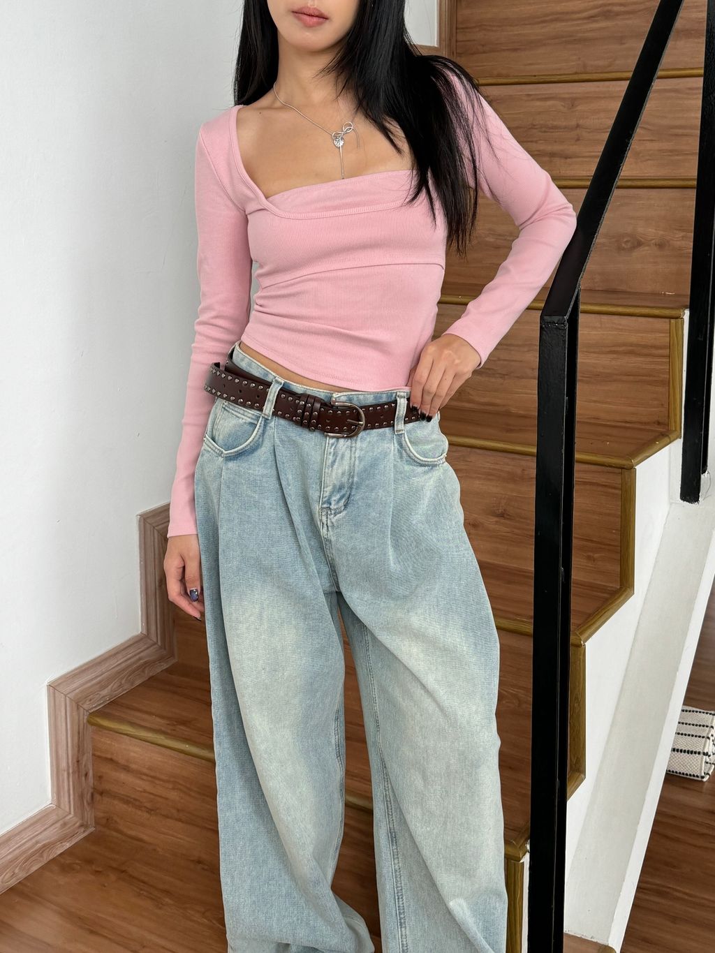 真的很爱这种基础又有细节的长袖啊谁懂!!比较修身的版型有种叠穿两件的抹胸效果和普通的长袖T 对比起来更有亮点不担心走光呀~~ 抹胸的部分是做的松紧条的兼具百搭好看 嫩嫩的粉显得人没有距离感值得拿下
