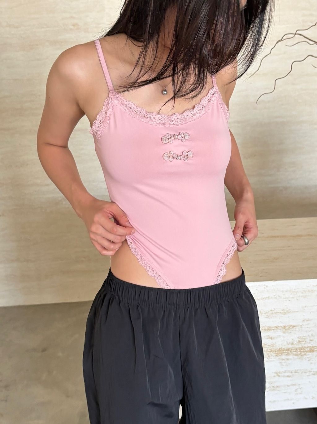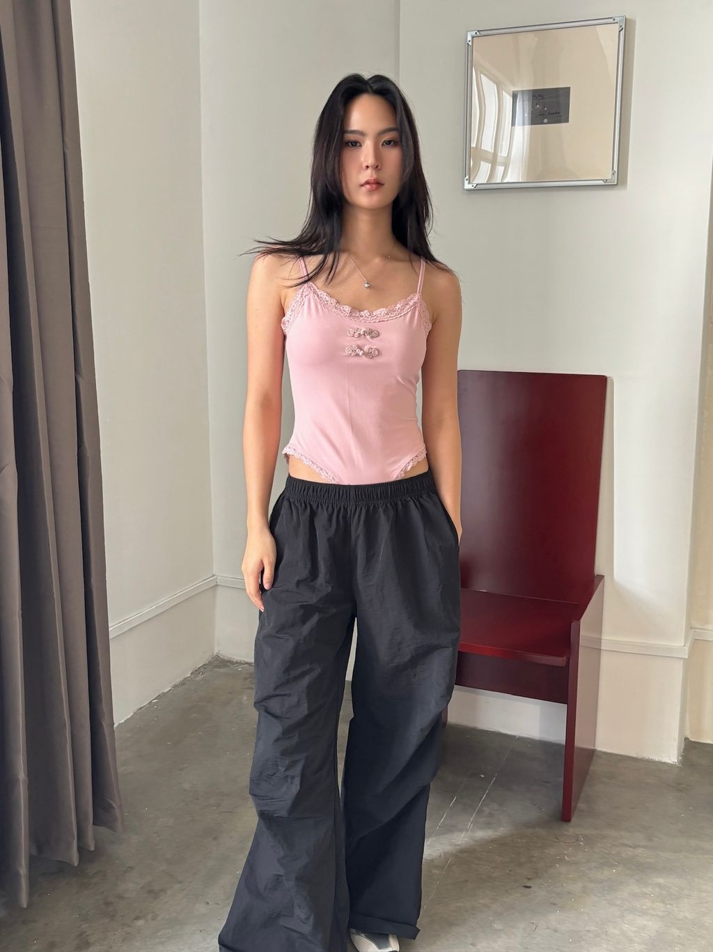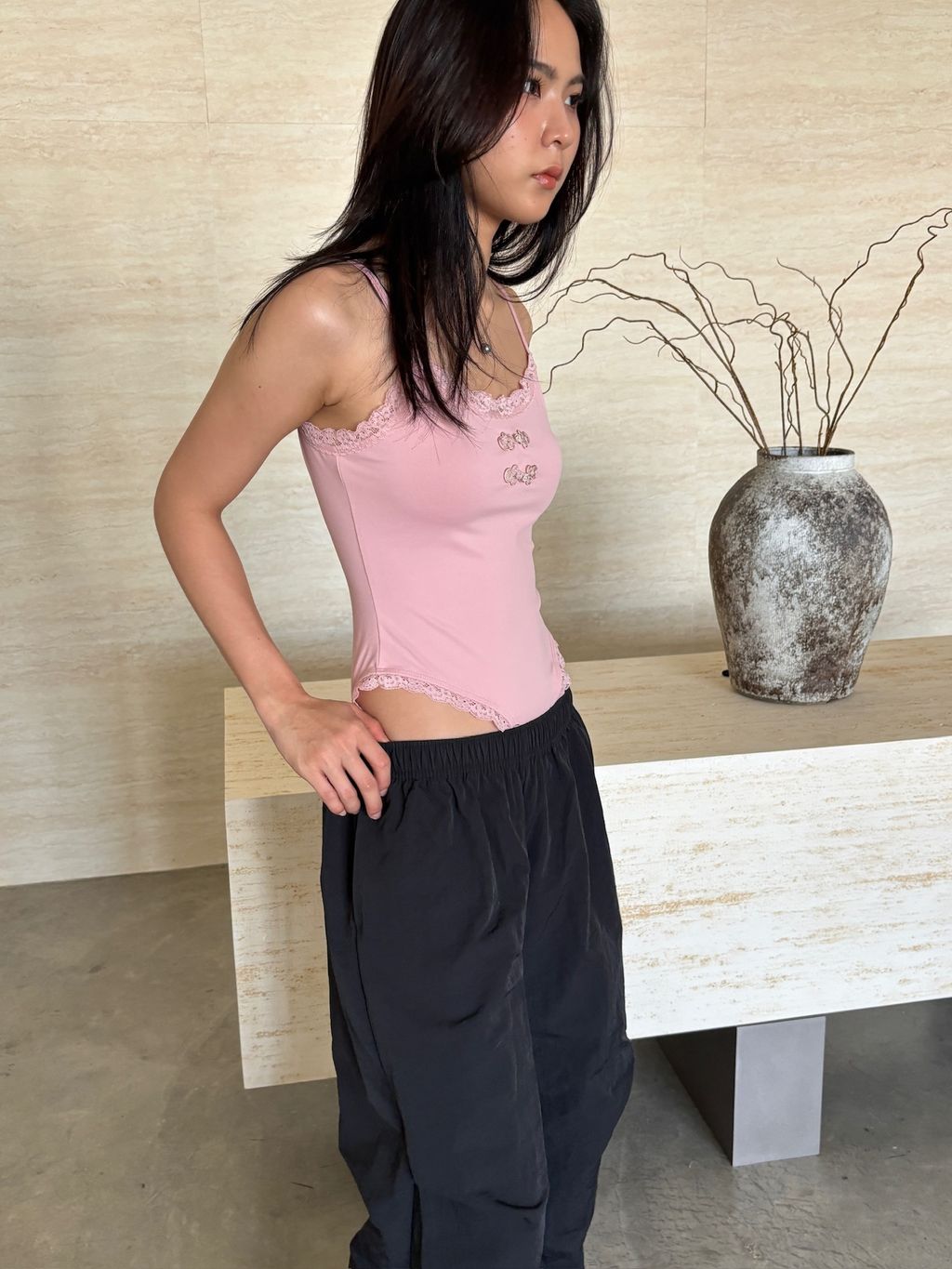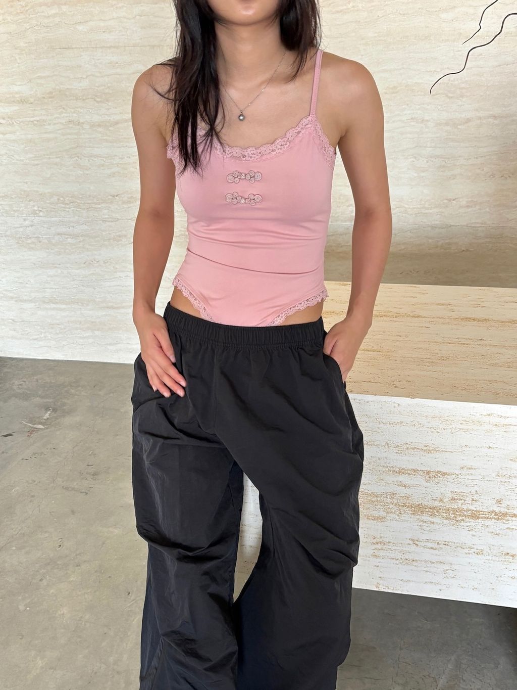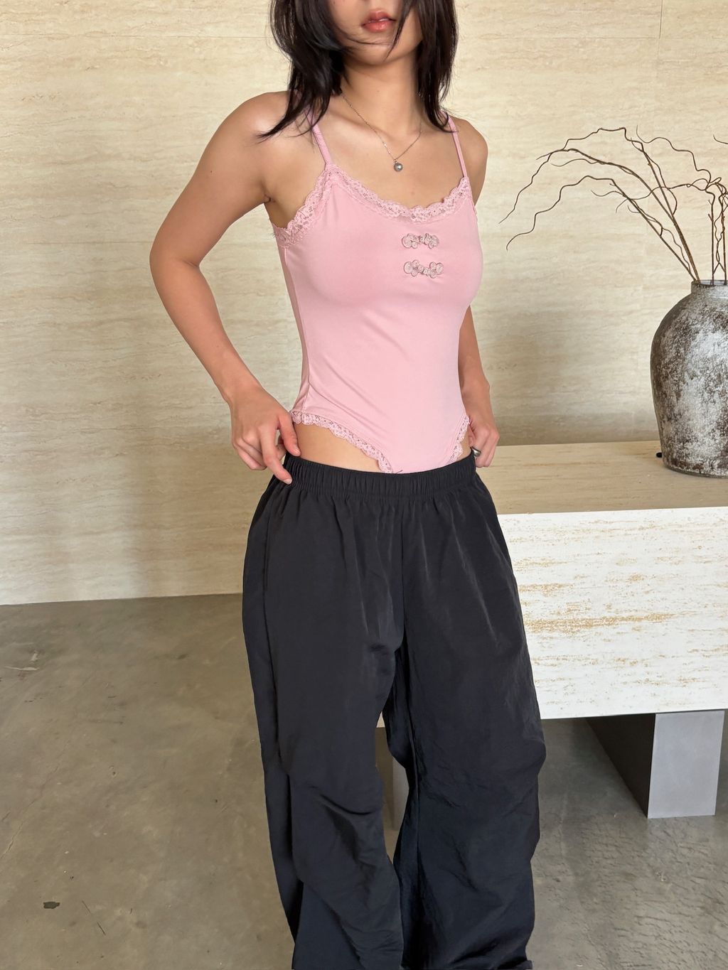蕾丝边拼接 连裤腿边缘也做了蕾丝边