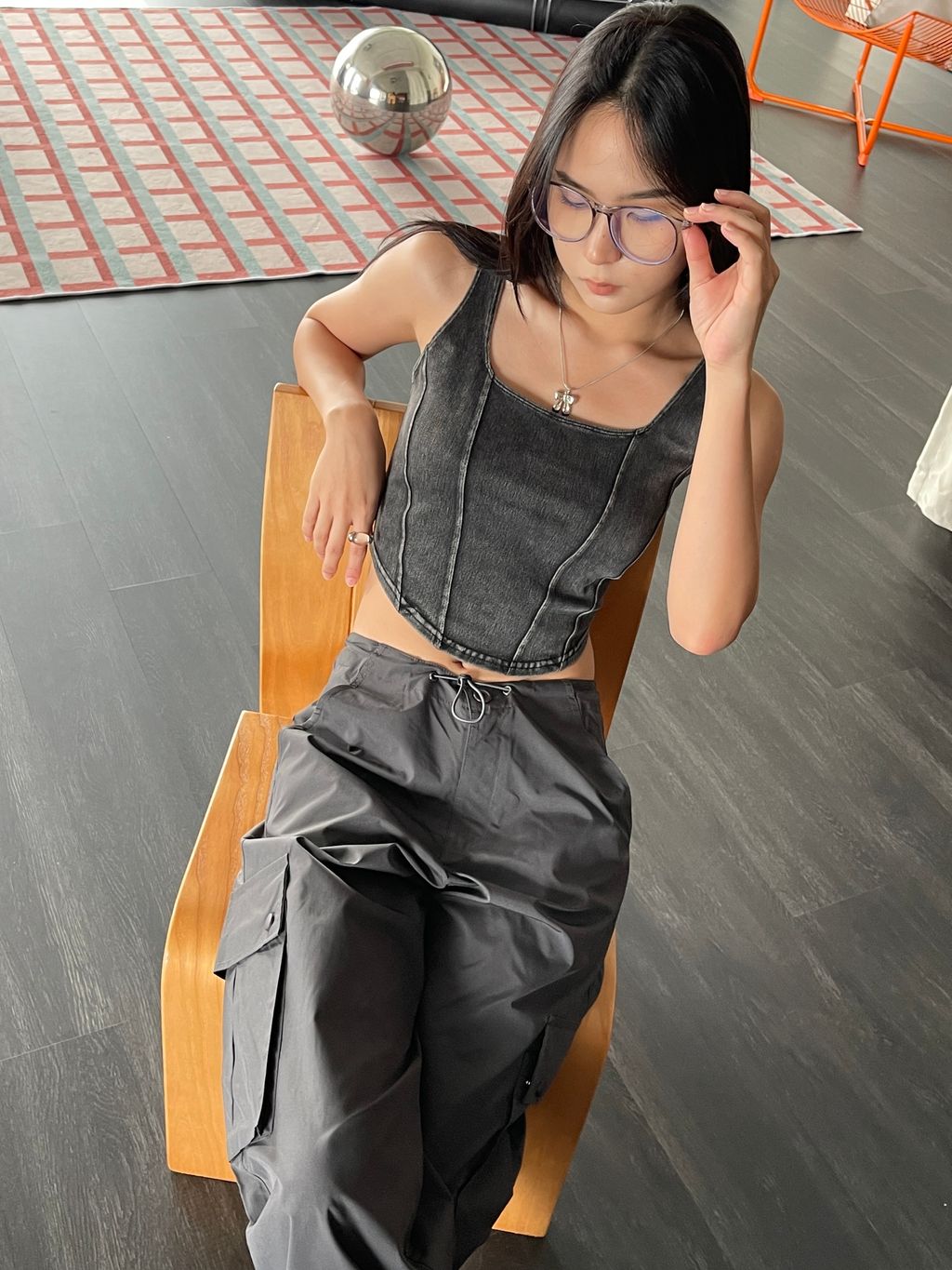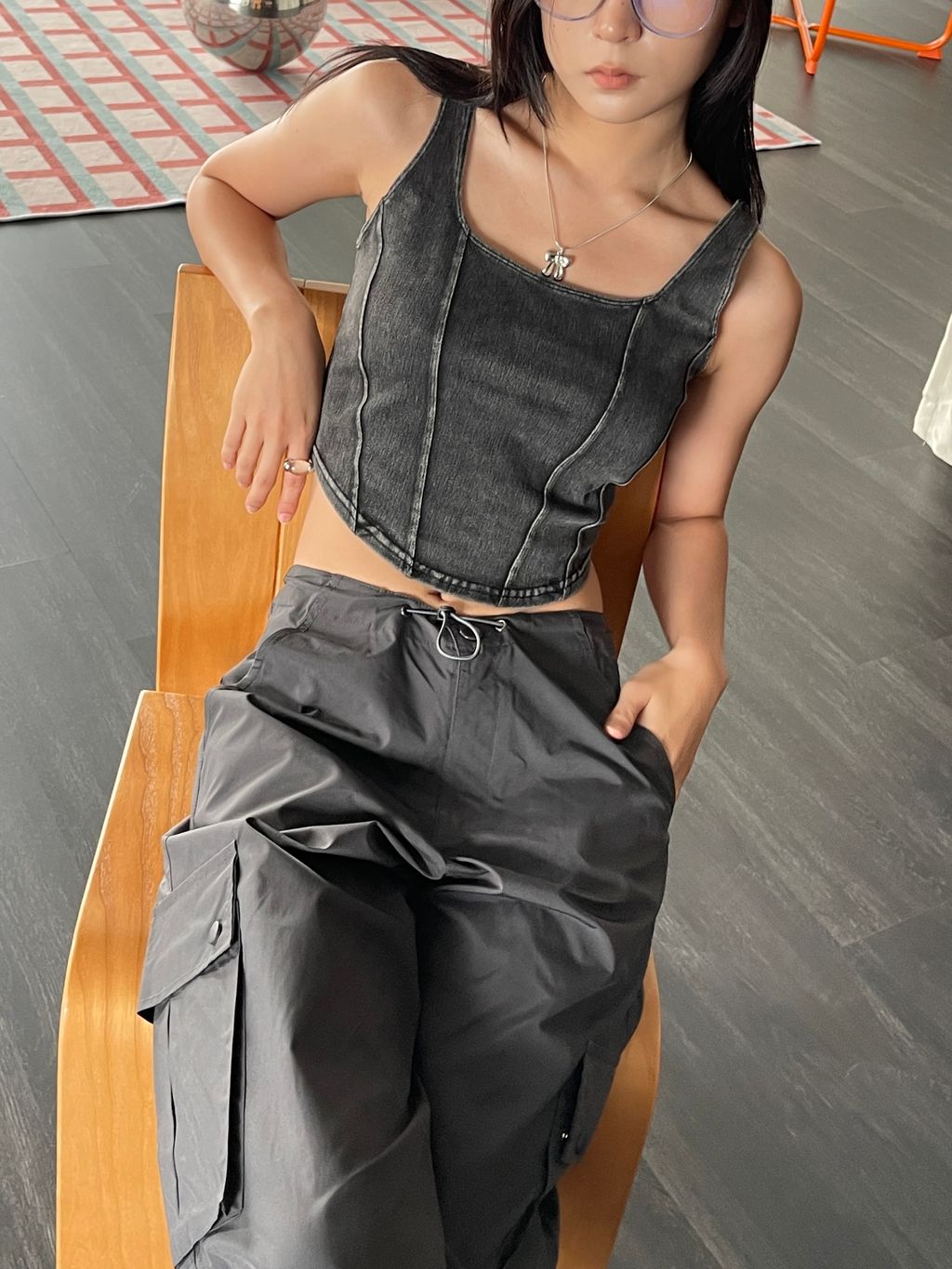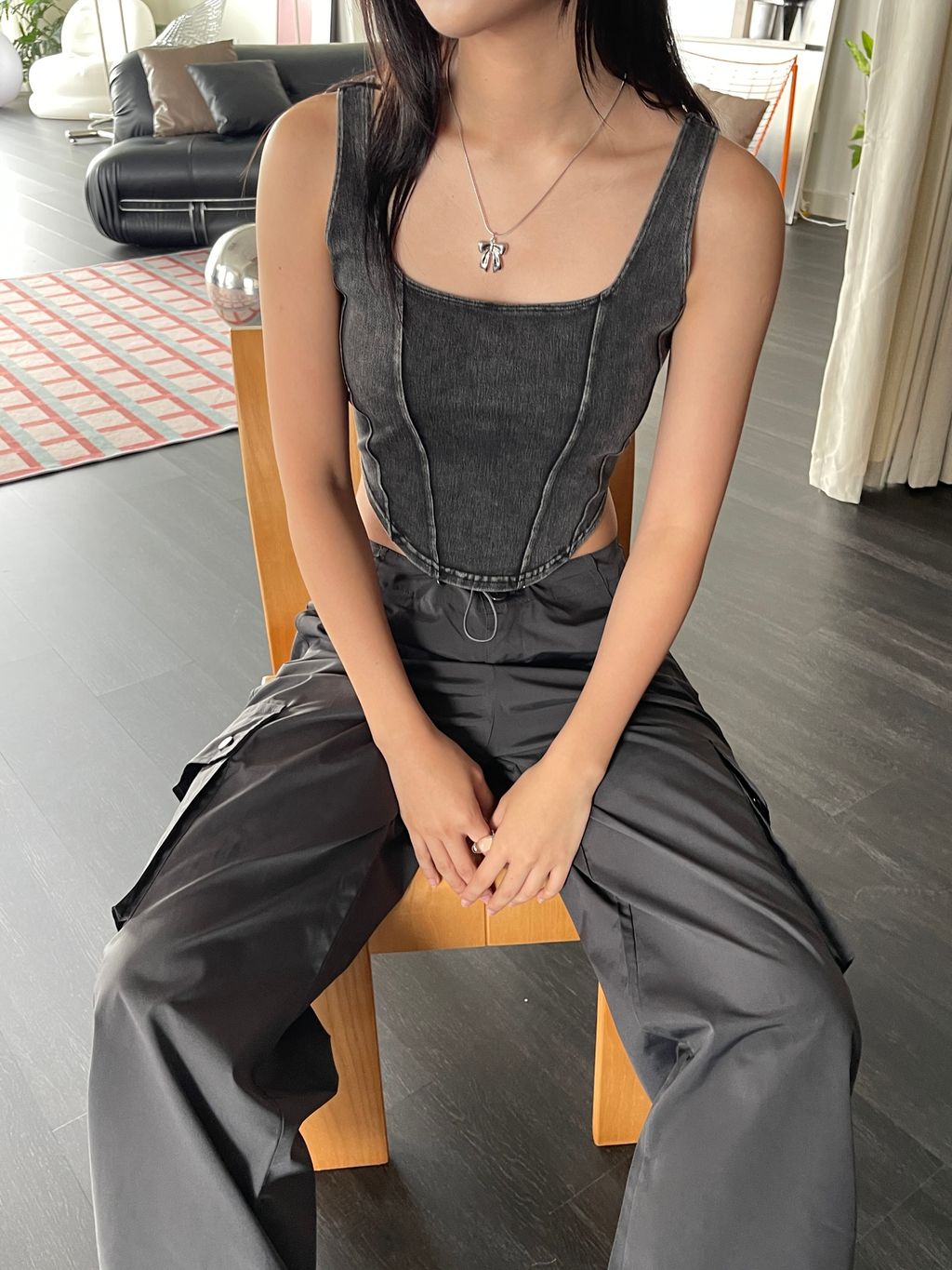 这款也是这一期强推的款看似牛仔的面料 实际是透气的水洗色“假”牛仔辣妹型修身立体版型仿鱼骨造型 收腰立裁 小蛮腰即视感满满都是我爱的细节老客都知道我真的很爱圆弧下摆 真的遮肉合身而不束缚 胸部包裹度特别好 贴个胸贴就行柔软亲肤 运动都可以穿他!!