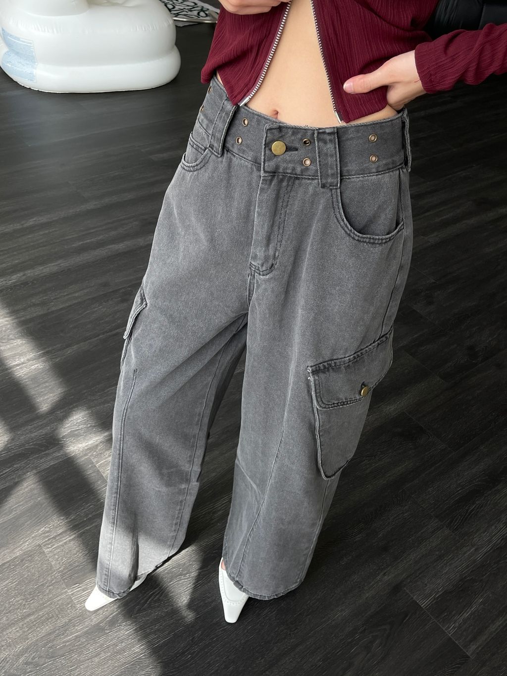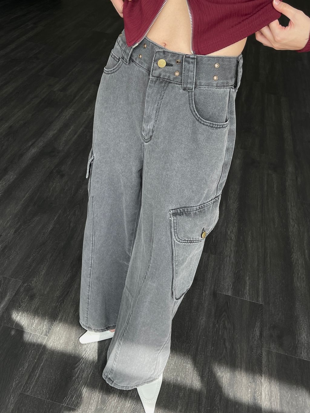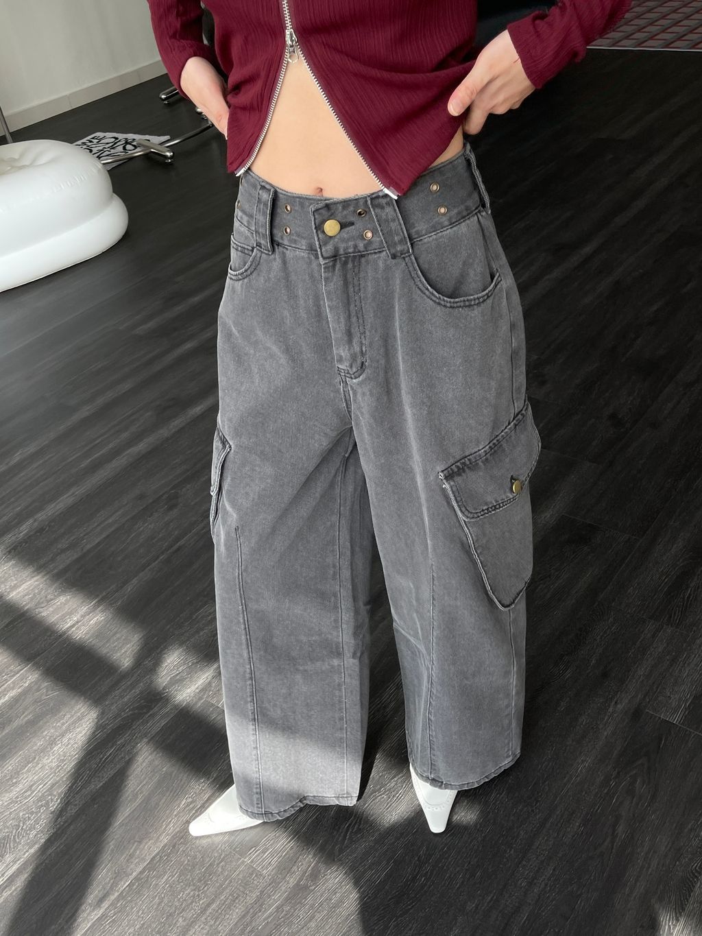 裤腿两侧大大的工装口袋 连扣子都是复古古铜色